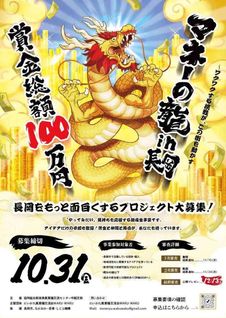 • 2025年10月20日「挑戦者求む!マネーの龍」(主催:niks 協同組合新潟県異業種交流センター 中越支部)