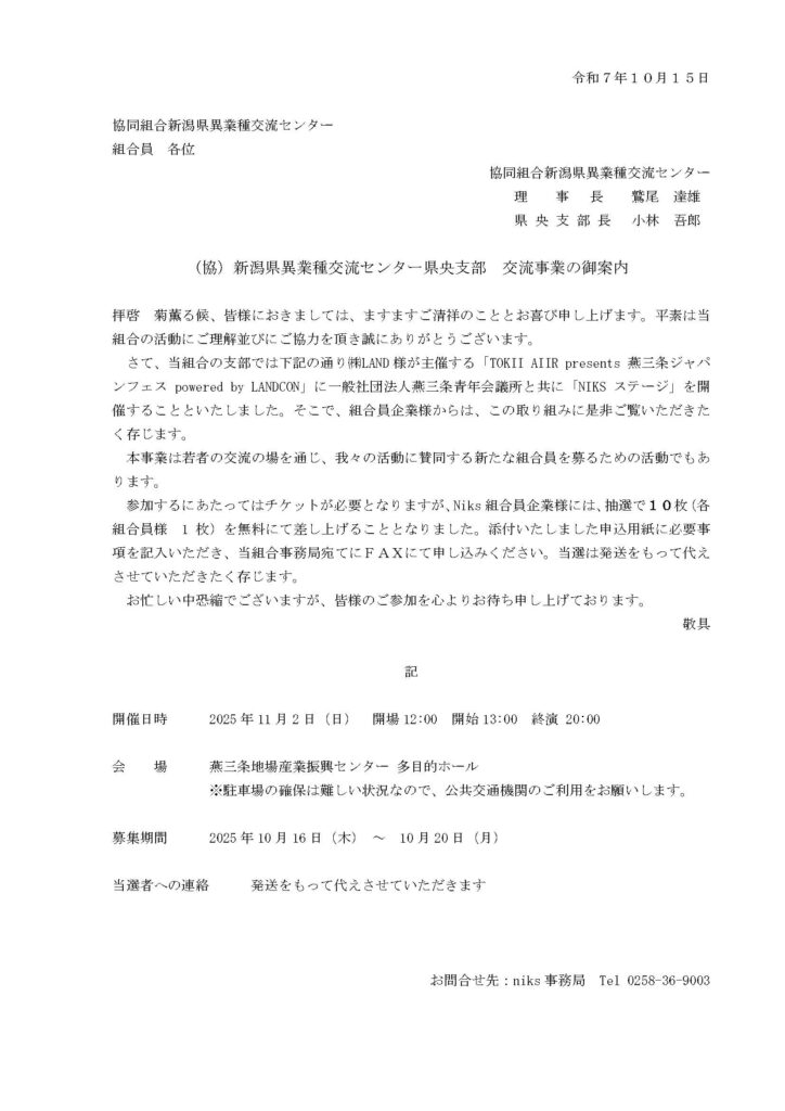 県央支部 交流事業の御案内「TSUBAME SANJO RUNWAY STORY」