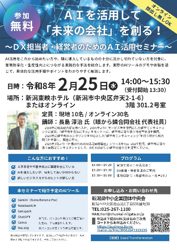 AIを活用して「未来の会社」を創る!~DX担当者・経営者のためのAI活用セミナー~のご案内